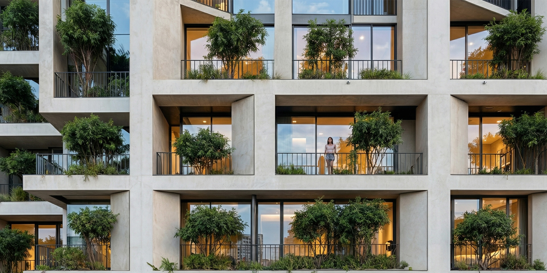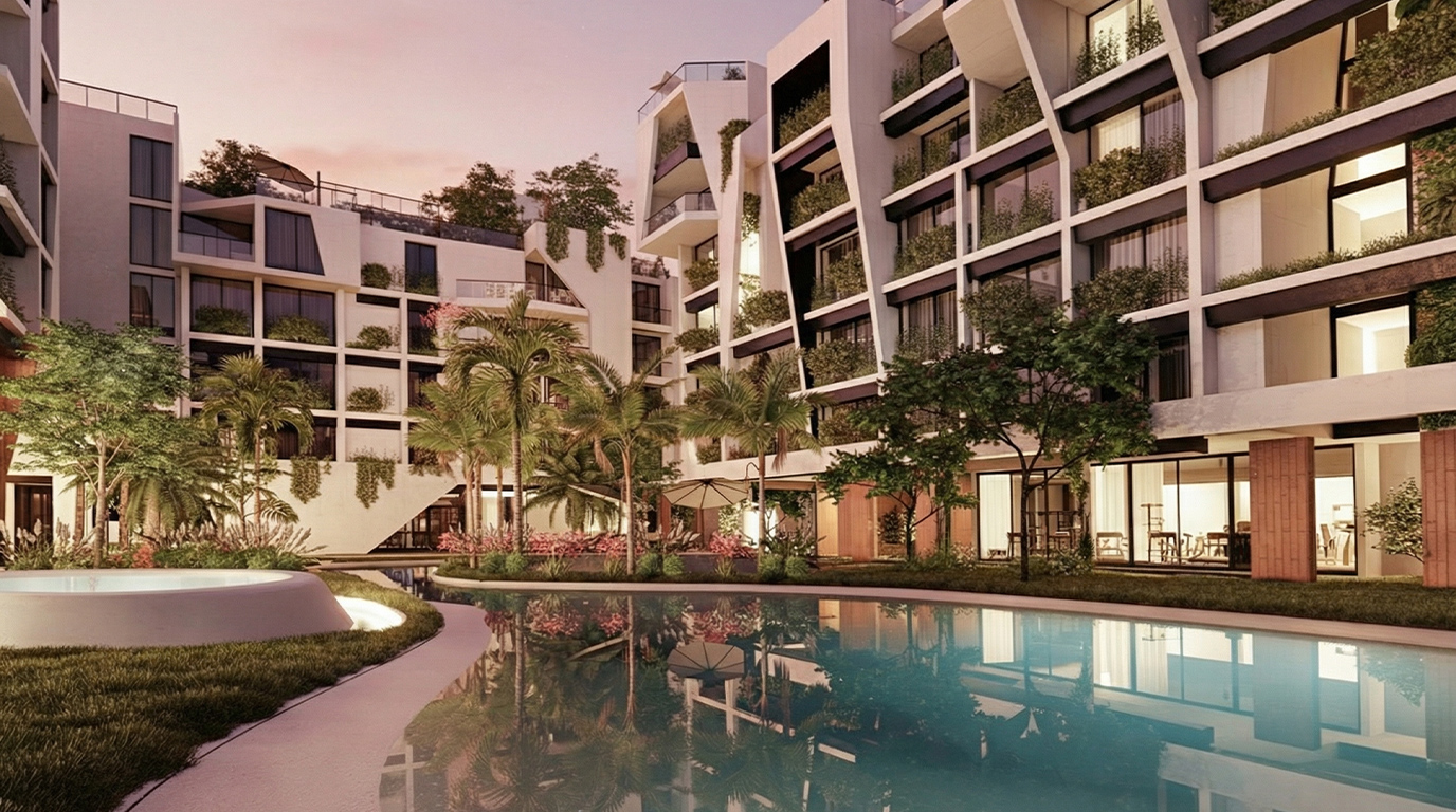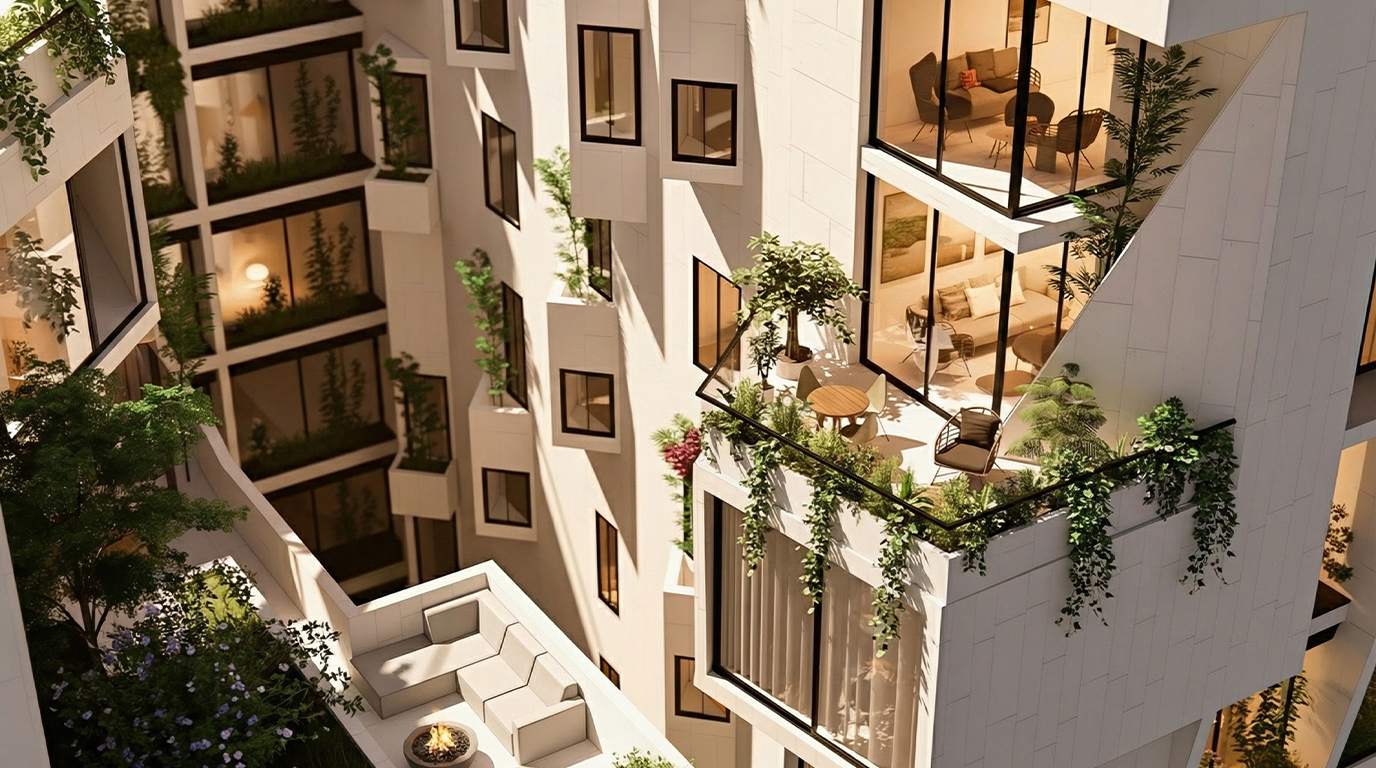 Suspended gardens and planted areas are thoughtfully integrated within the structures, enhancing the living spaces with garden-level functions. The Oasis not only offers a variety of apartments in different sizes and styles but also provides a pleasant escape from everyday life, enveloped in a lush, green atmosphere.