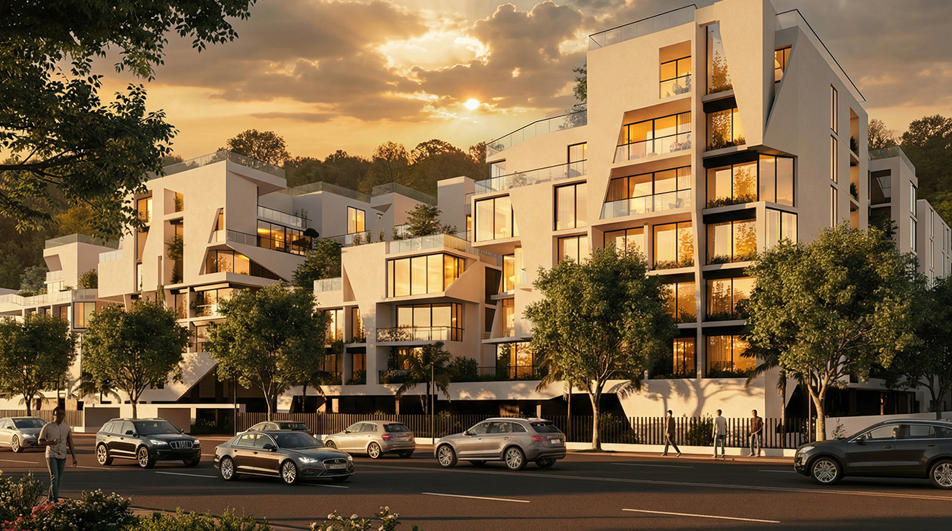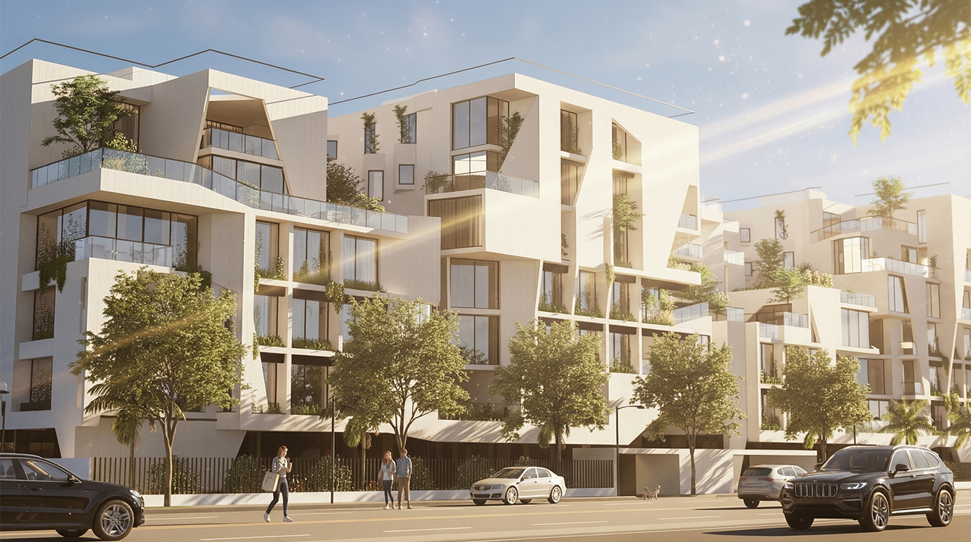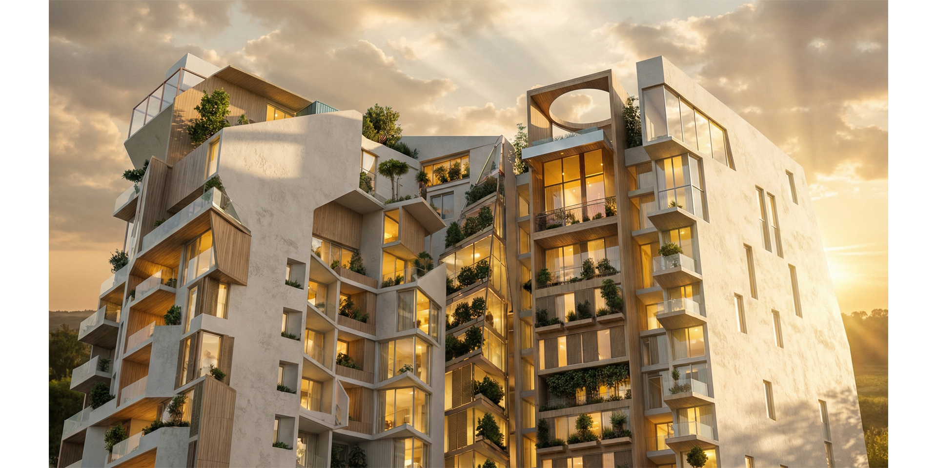 Suspended gardens and planted areas are thoughtfully integrated within the structures, enhancing the living spaces with garden-level functions. The Oasis not only offers a variety of apartments in different sizes and styles but also provides a pleasant escape from everyday life, enveloped in a lush, green atmosphere.