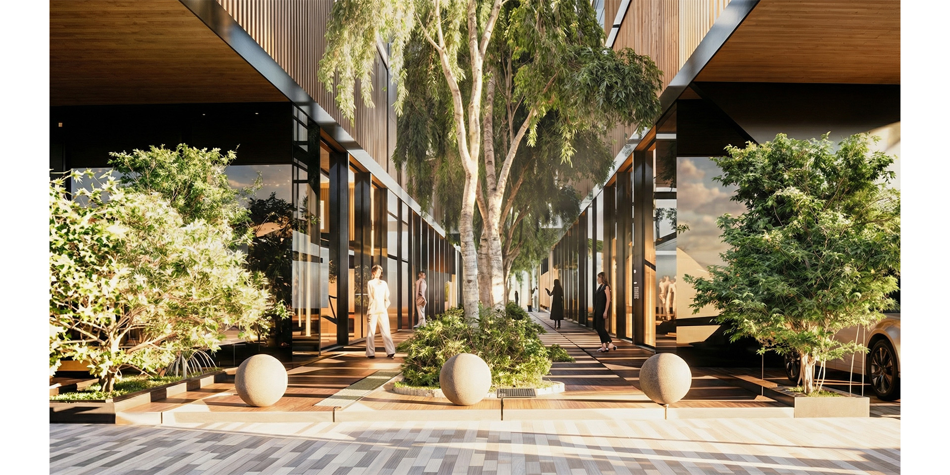The project divides the plot into two equal sections, with the portion adjacent to the green corridor being developed in Phase 1. The design features a dual-building structure connected by a central linear void. Each building consists of two main cores and a central corridor that provides access to the studios.
