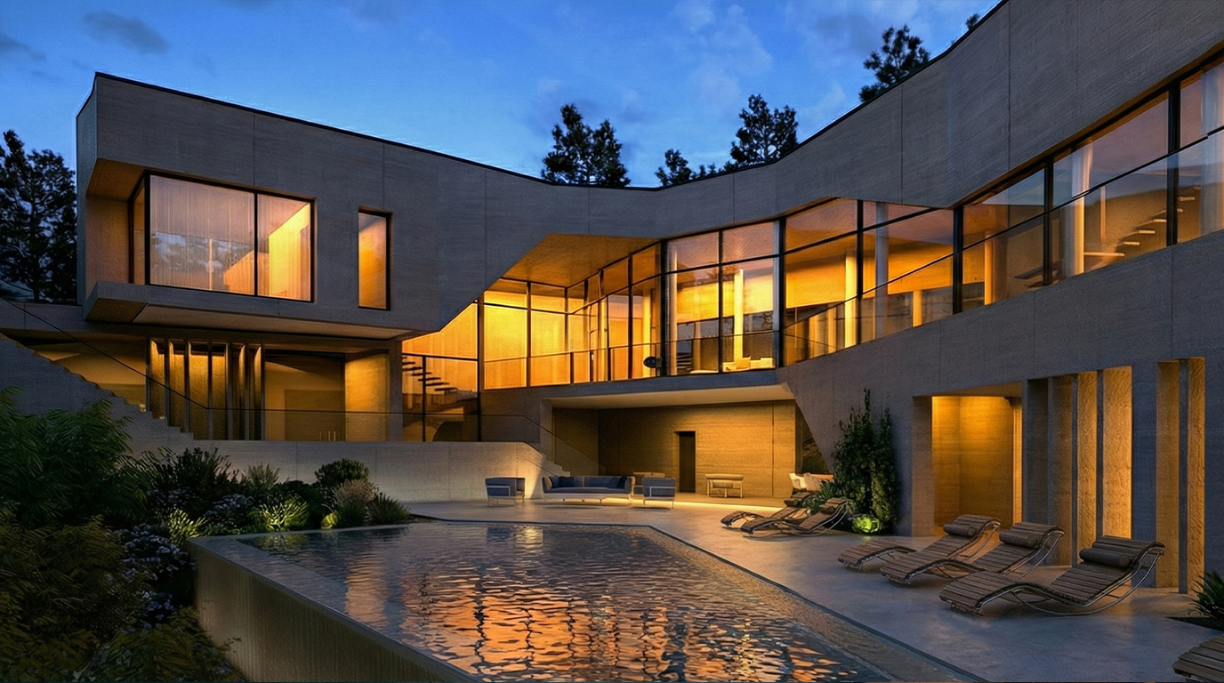 The design consists of a series of interconnected slabs that lead to the main terrace and an outdoor seating area, creating a seamless transition between architecture and nature. The residence is completed by a spectacular infinity pool and external bleachers, which draw attention to the surrounding trees and create an inviting ambiance. S Villa in Abdelle serves as a direct link between nature and living, existing in harmony with its environment while remaining beautifully discreet. This unique quality is what makes it truly remarkable