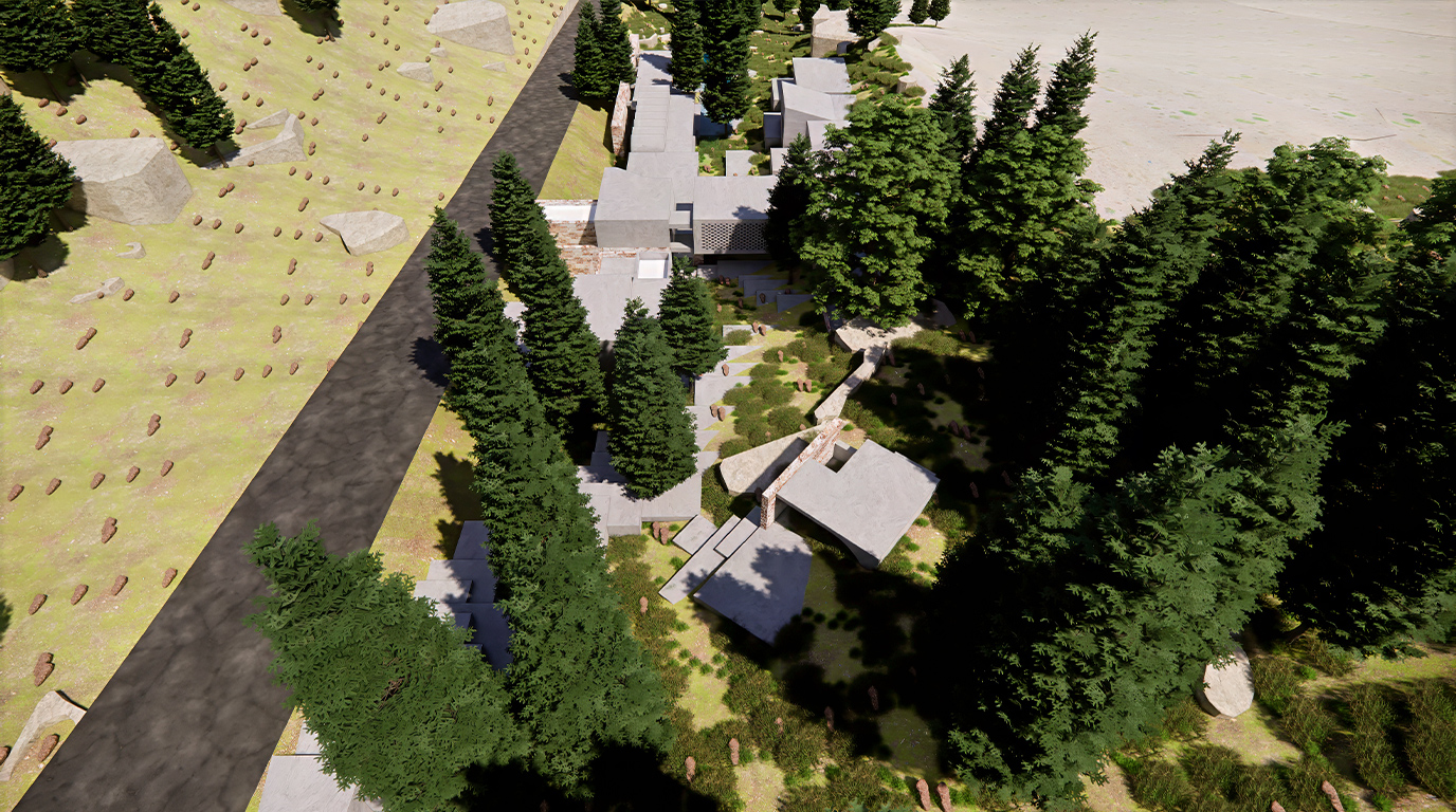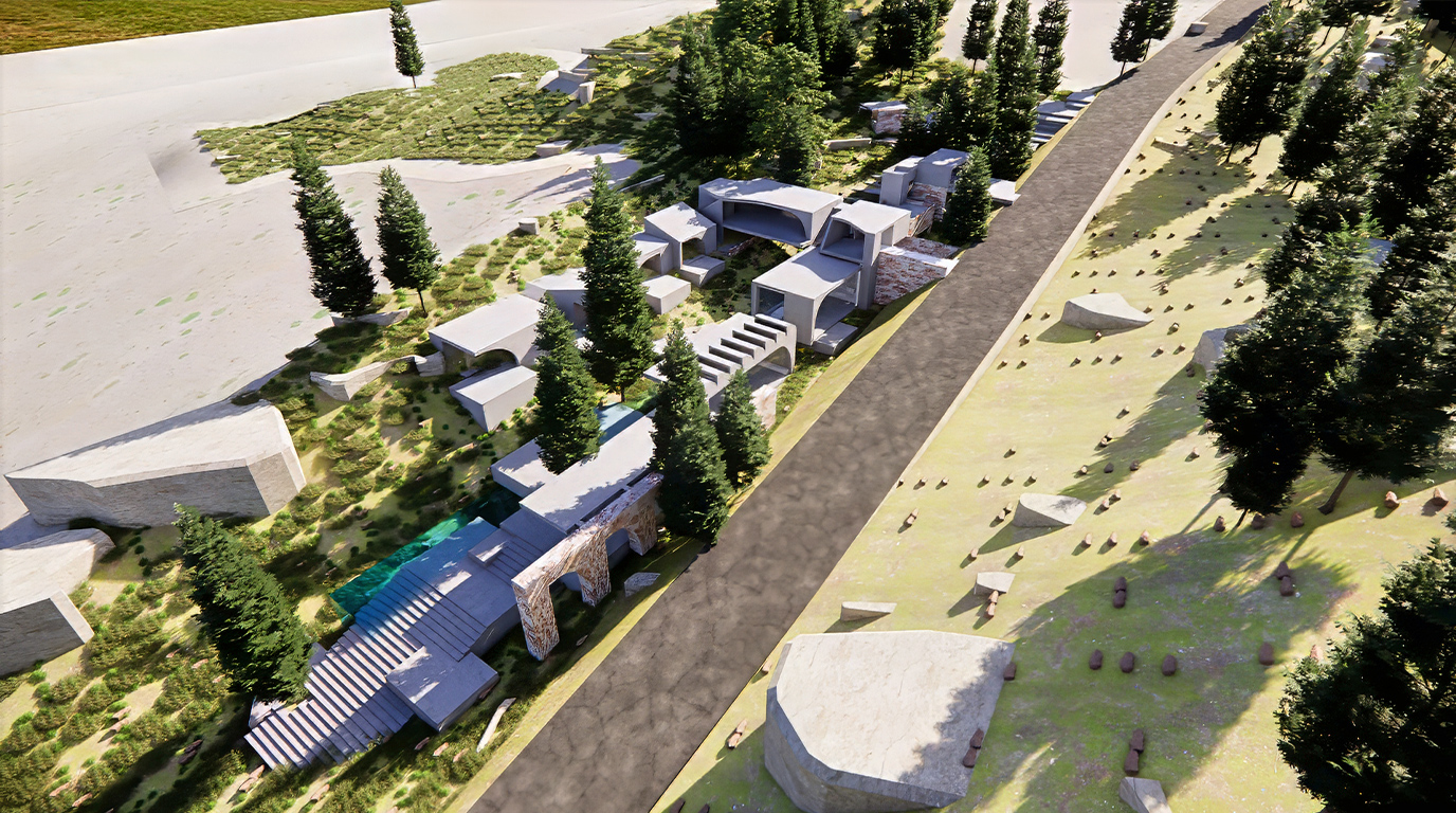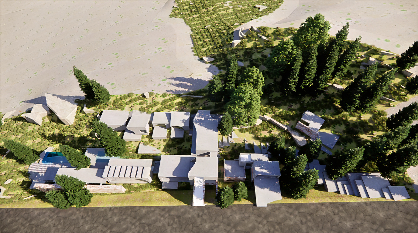 Rather than a single object, the project unfolds as a sequence of autonomous volumes, each framing a specific moment of light, vegetation, and topography. Circulation becomes a path through the terrain, and inhabitation becomes an experience shaped by movement, silence, and proximity to the landscape.