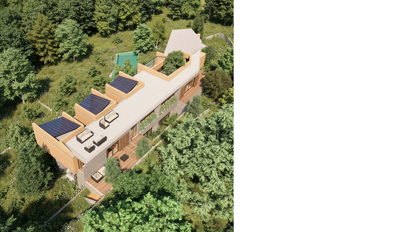 Located in the Beqaa Valley, this residence is conceived as a fragmented architectural composition unfolding across two levels in constant dialogue with its surroundings. A unified concrete base anchors the project to the land, forming a continuous ground plane upon which lighter, private wooden volumes are placed.