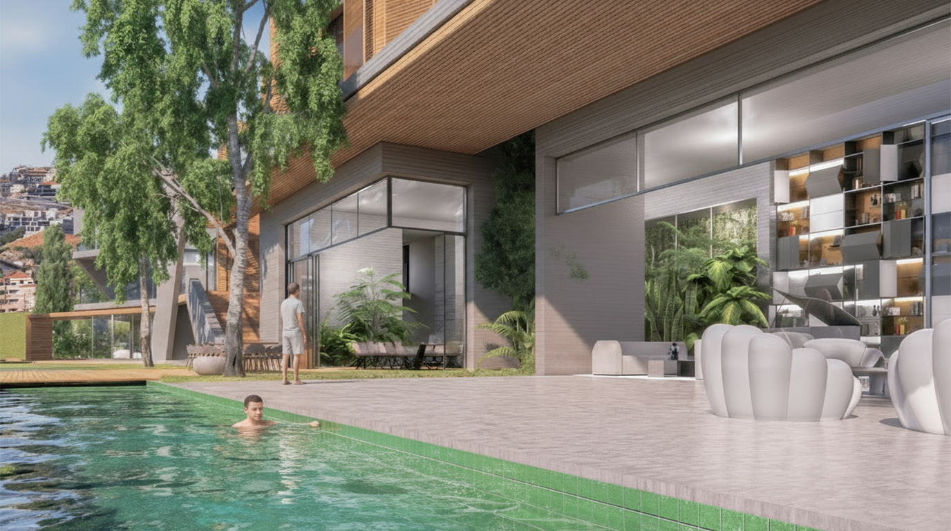At the heart of the outdoor experience, an infinity pool acts as a social and spatial hub, connecting reception areas, terraces, and garden spaces. Through material contrast, fragmentation, and openness, Baaloul Residence becomes an architecture that does not sit within the landscape—but belongs to it.