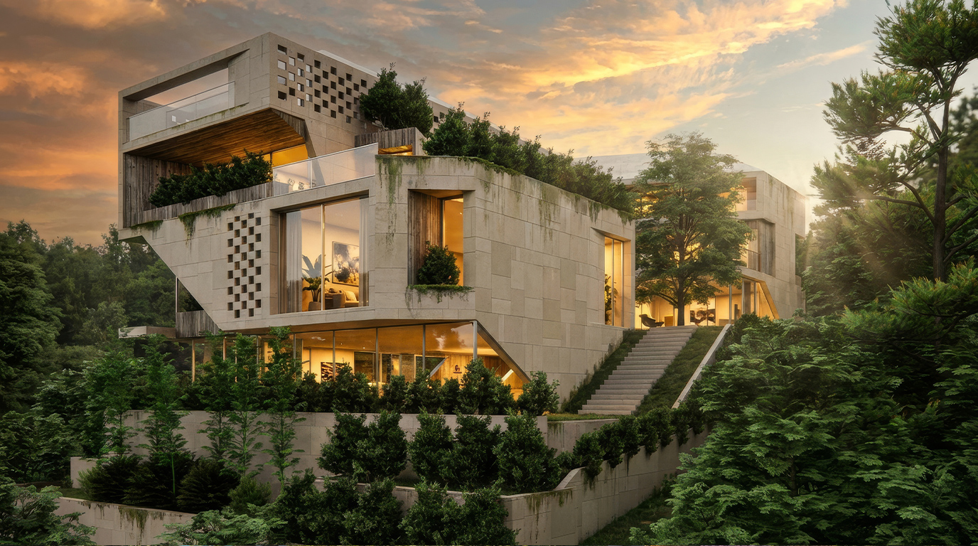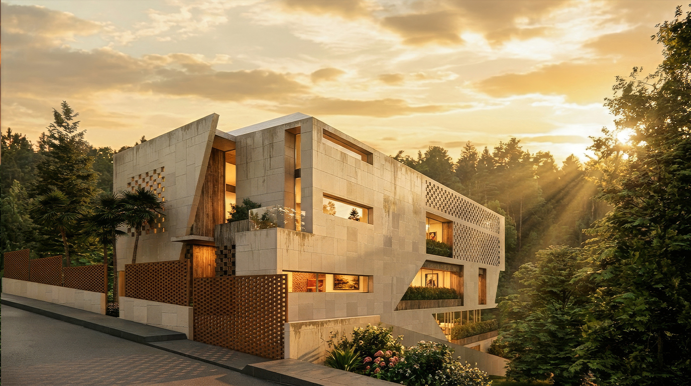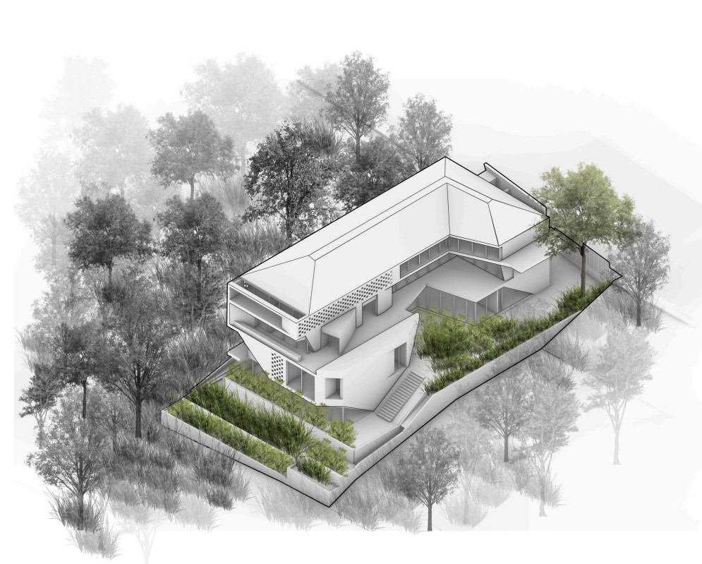 The project aims to respond sensitively to its topography and surroundings, blending the building seamlessly into the site while preserving the natural character of the hill. At the same time, the design prioritizes privacy, carefully orienting spaces and openings to frame views toward the greenery while limiting visual exposure to adjacent properties.