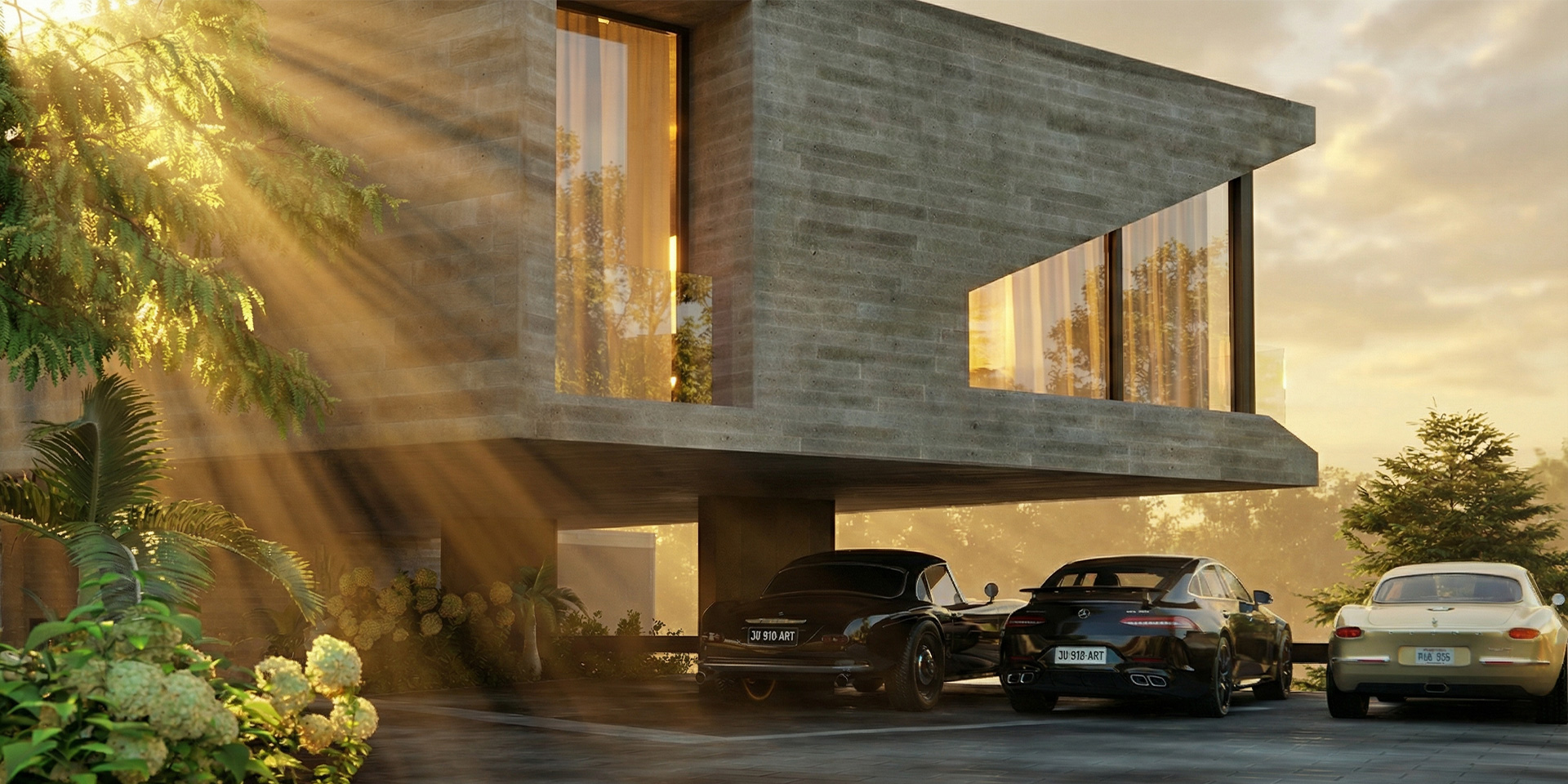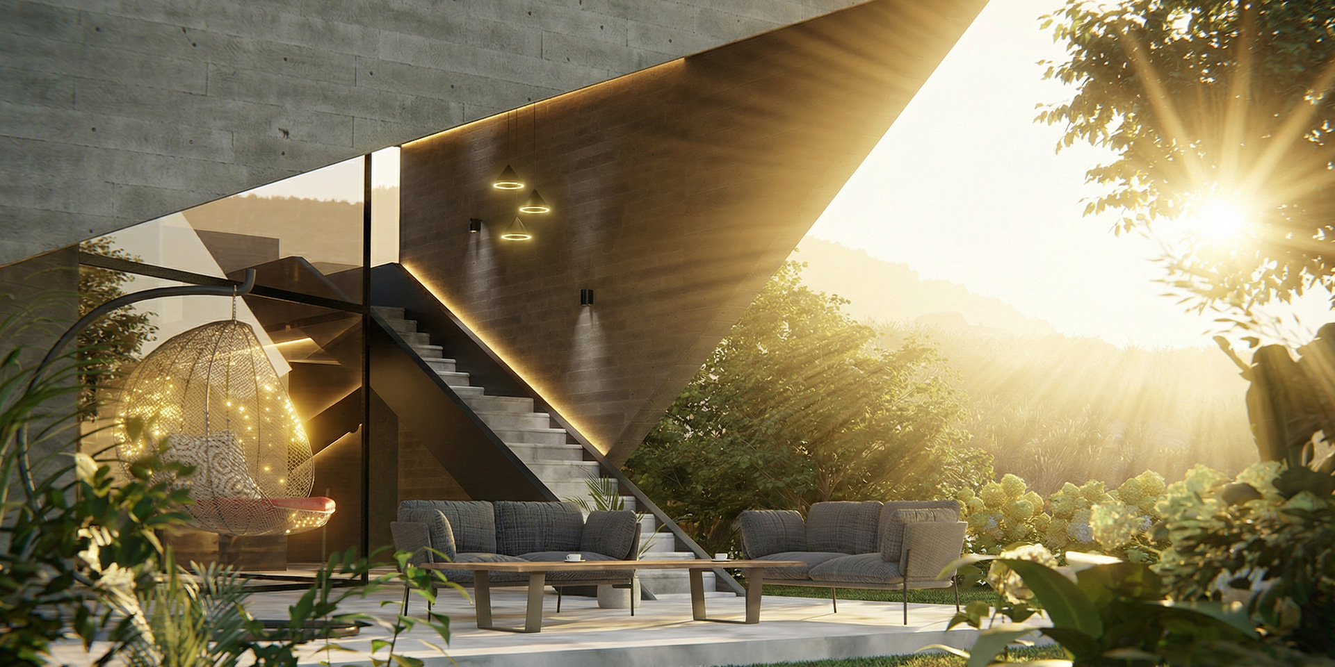 Gliding smoothly in the site, it wraps around a series of stairs leading from terrace to terrace within the heart of the residence where timber boards are exposed throughout and feature on floors, walls and ceilings.