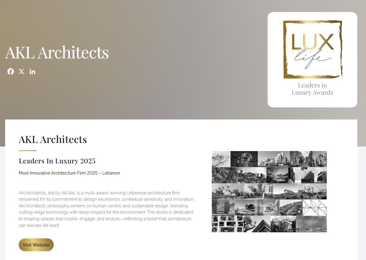 AKL ARCHITECTS is an award-winning Lebanese firm renowned for its commitment to expertise, professionalism, and excellence. Over the past few years, the firm has received numerous prestigious accolades, including: