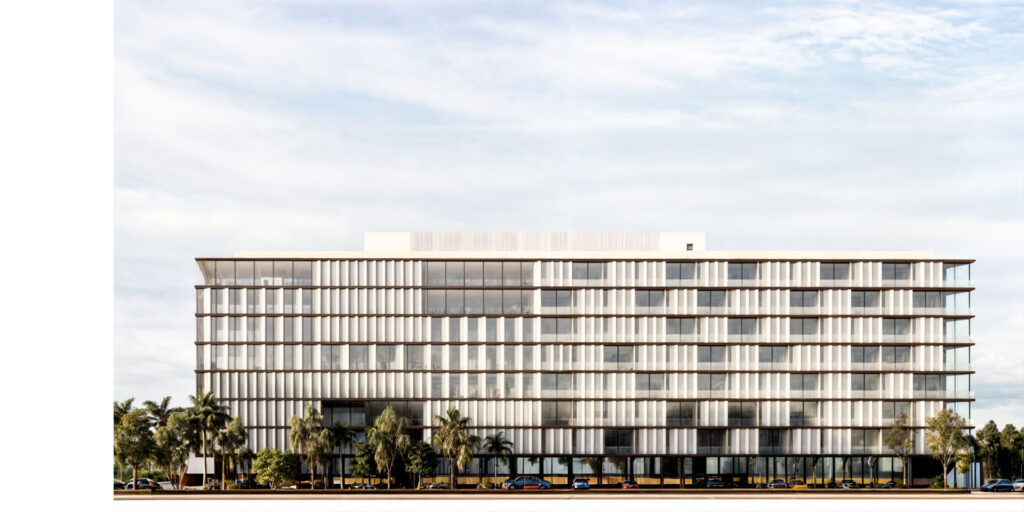 The project divides the plot into two equal sections, with the portion adjacent to the green corridor being developed in Phase 1. The design features a dual-building structure connected by a central linear void. Each building consists of two main cores and a central corridor that provides access to the studios.